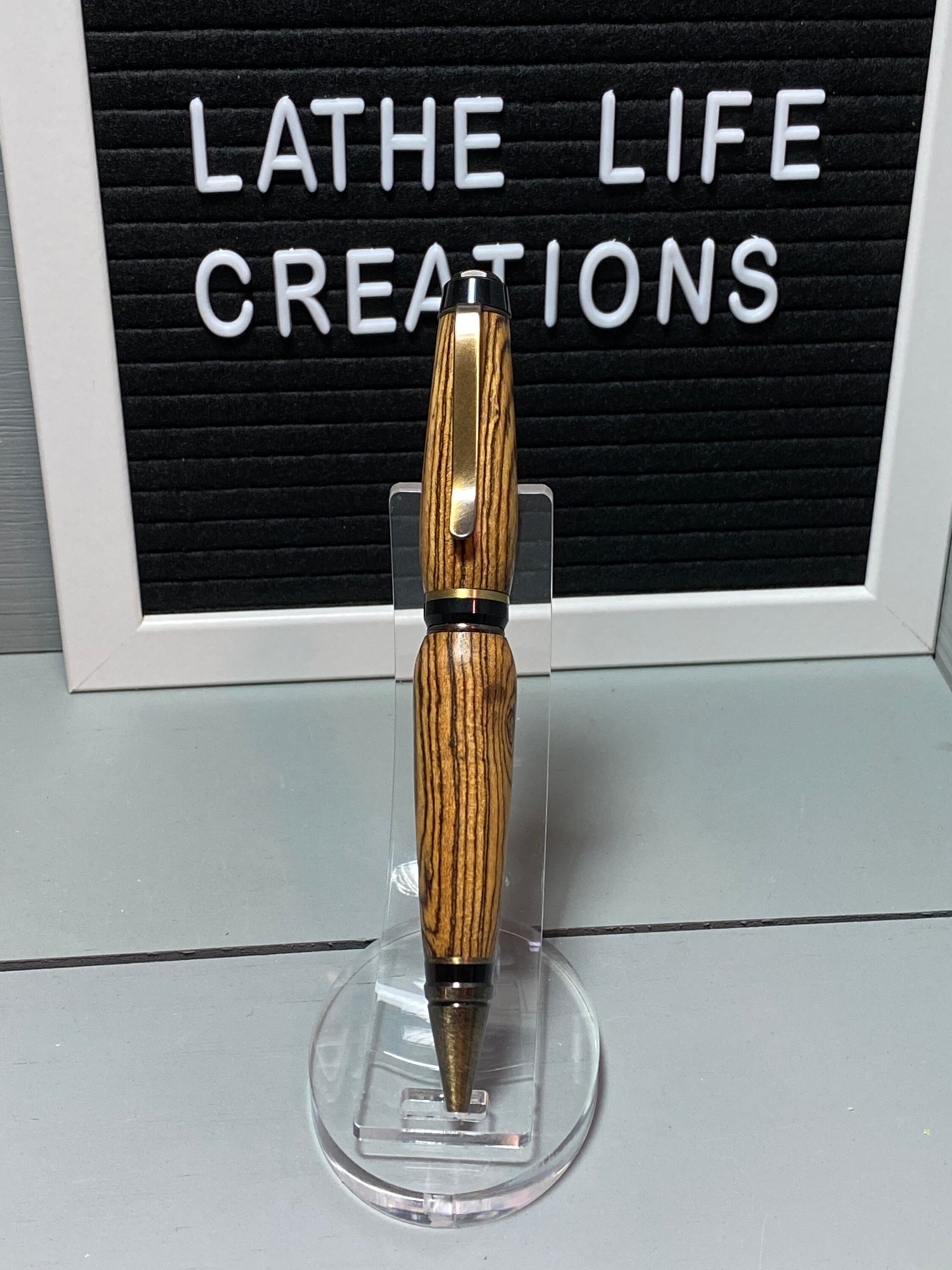 The Coyote Bocote is made of a natural wood from the Rio Grande Valley. It's more famous use in the construction of guitars. You will make beautiful music with this unique writing instrument. This pen is appropriately finished with an antique gold trim, elegant and yet the perfect match to make this a smooth writing instrument.