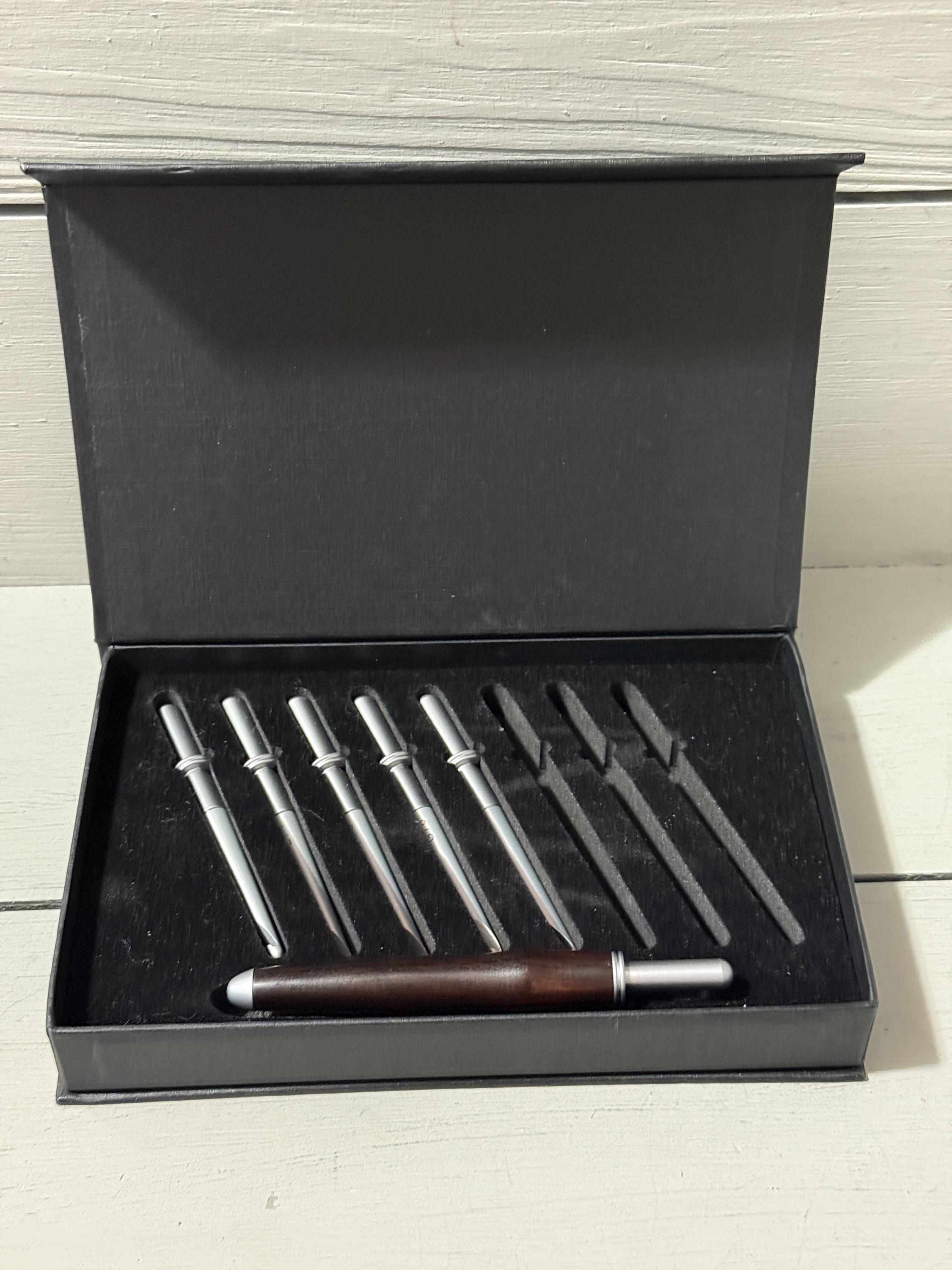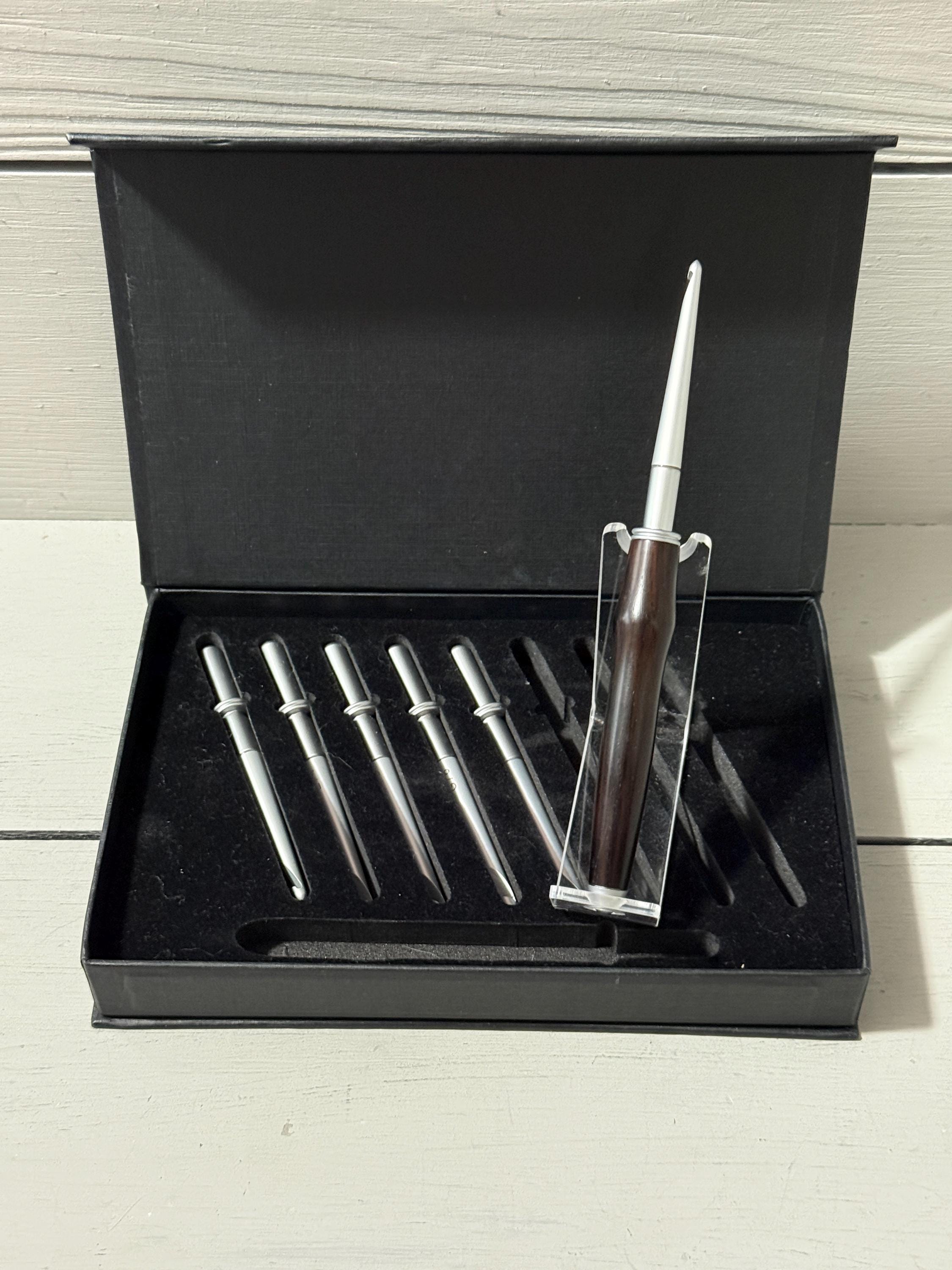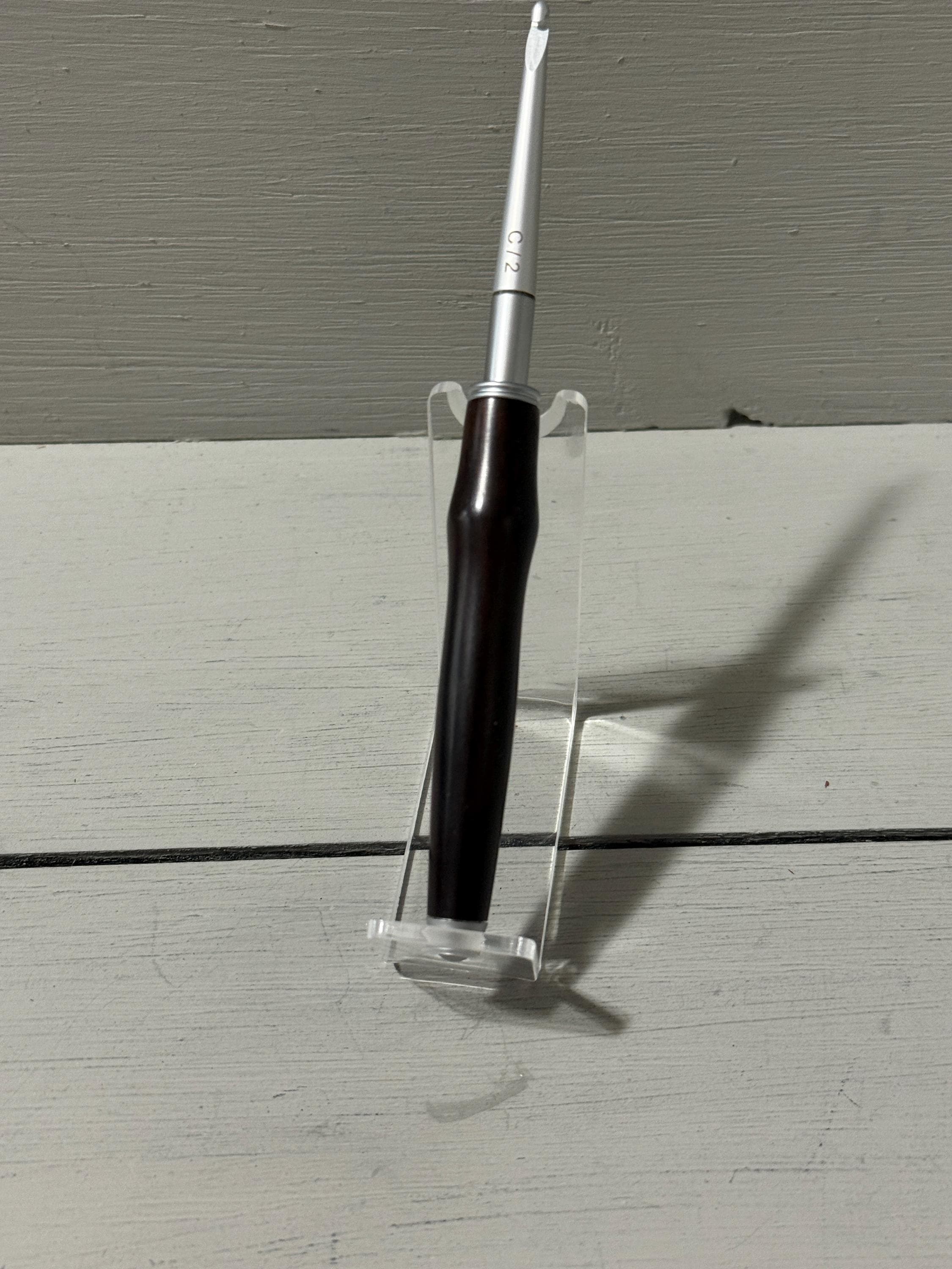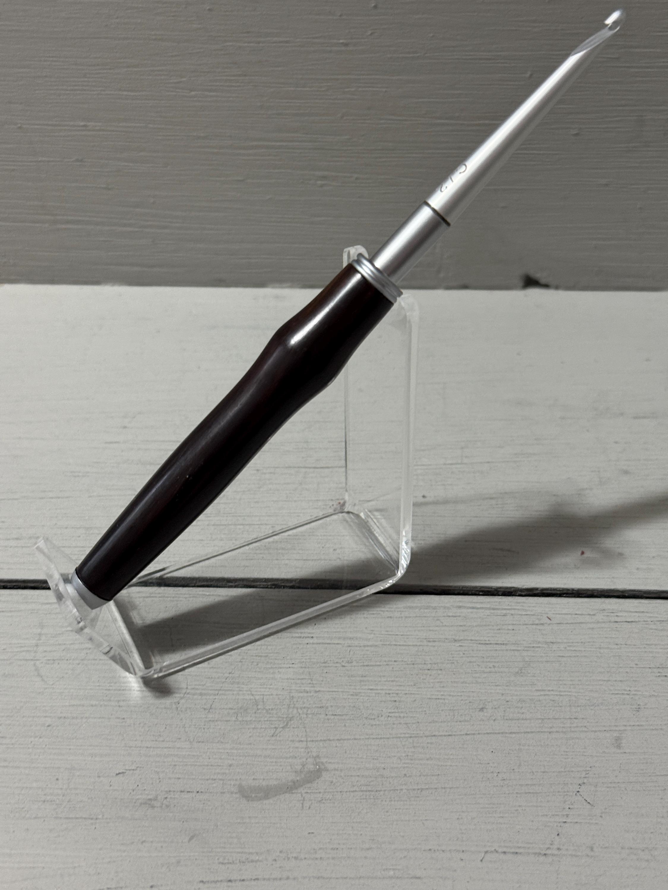 This beautiful crochet hook set includes a handcrafted crochet handle made of unique cocobolo wood, finished in brushed satin silver trim to match the assorted hooks that are part of this set. Brownheart wood is highly prized for its dark color, straight grain, true heartwood. It's heavy, strong, and shock resistant... a very durable hardwood.