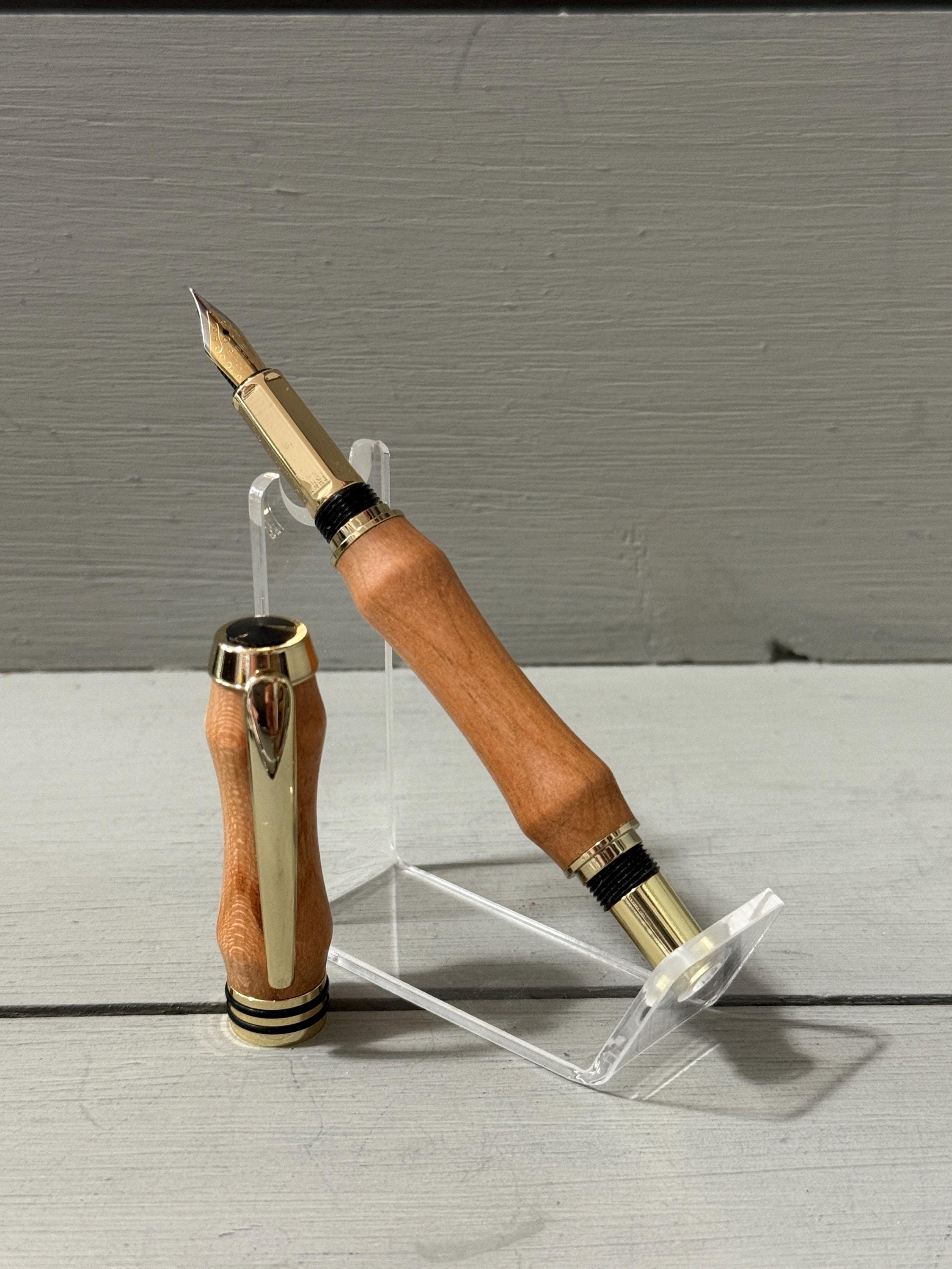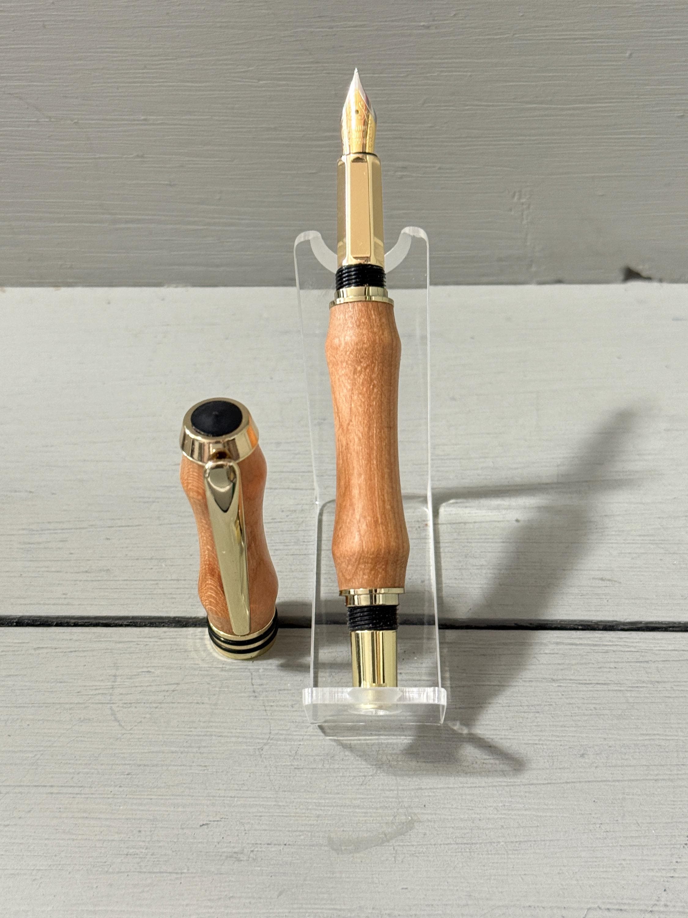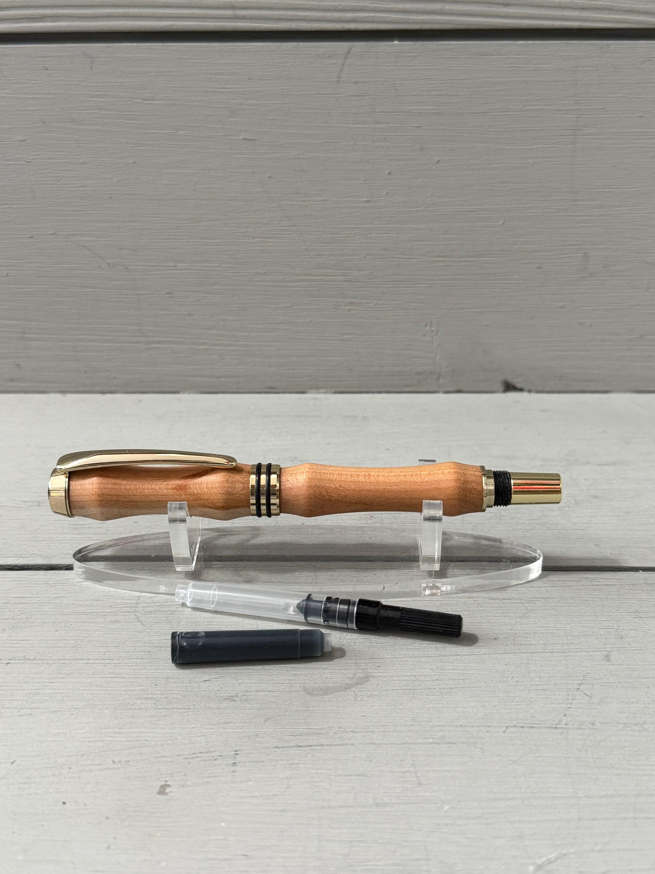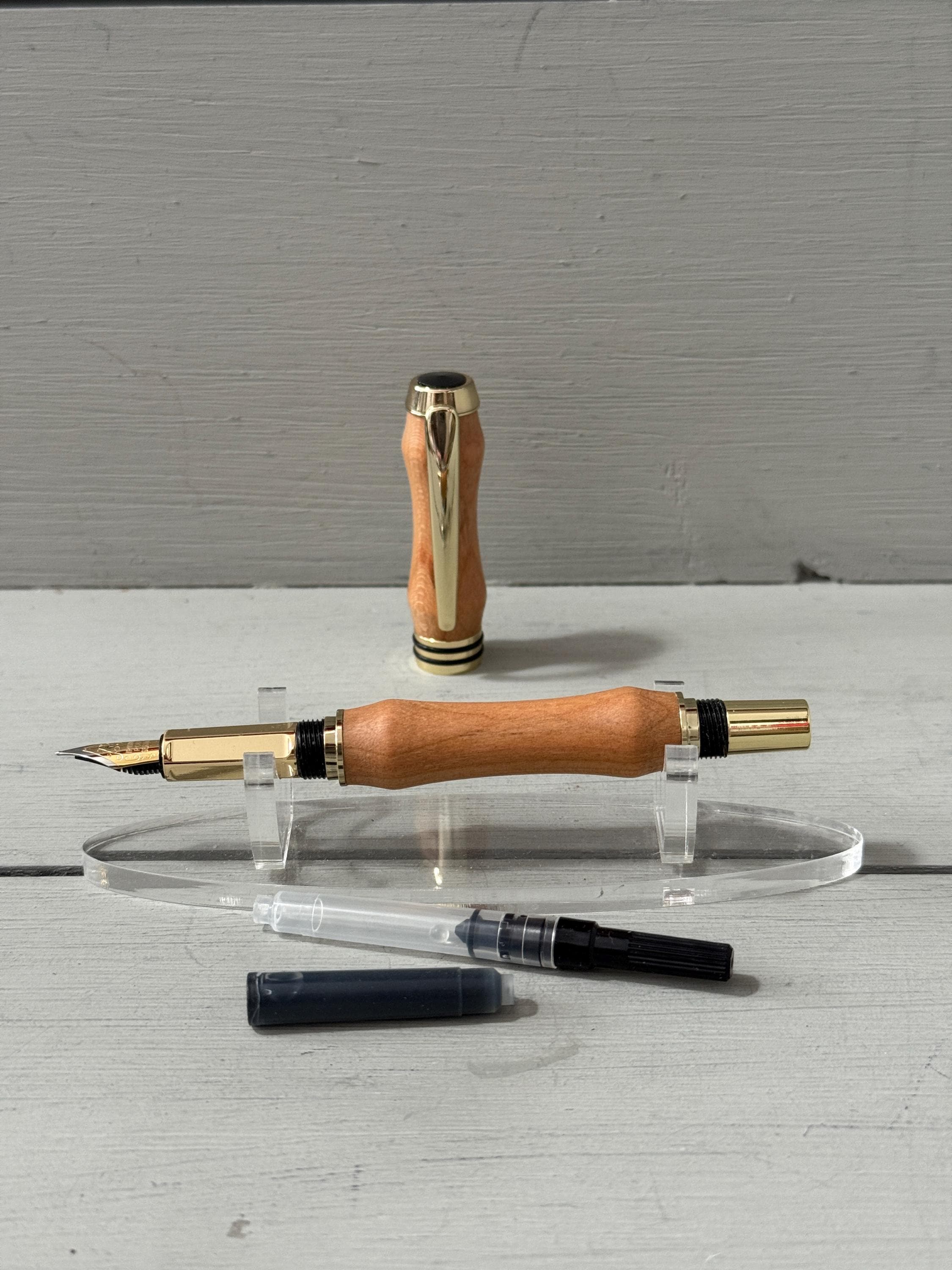 Curvy Cherry Fountain Pen – Cherry Wood with Gold Trim