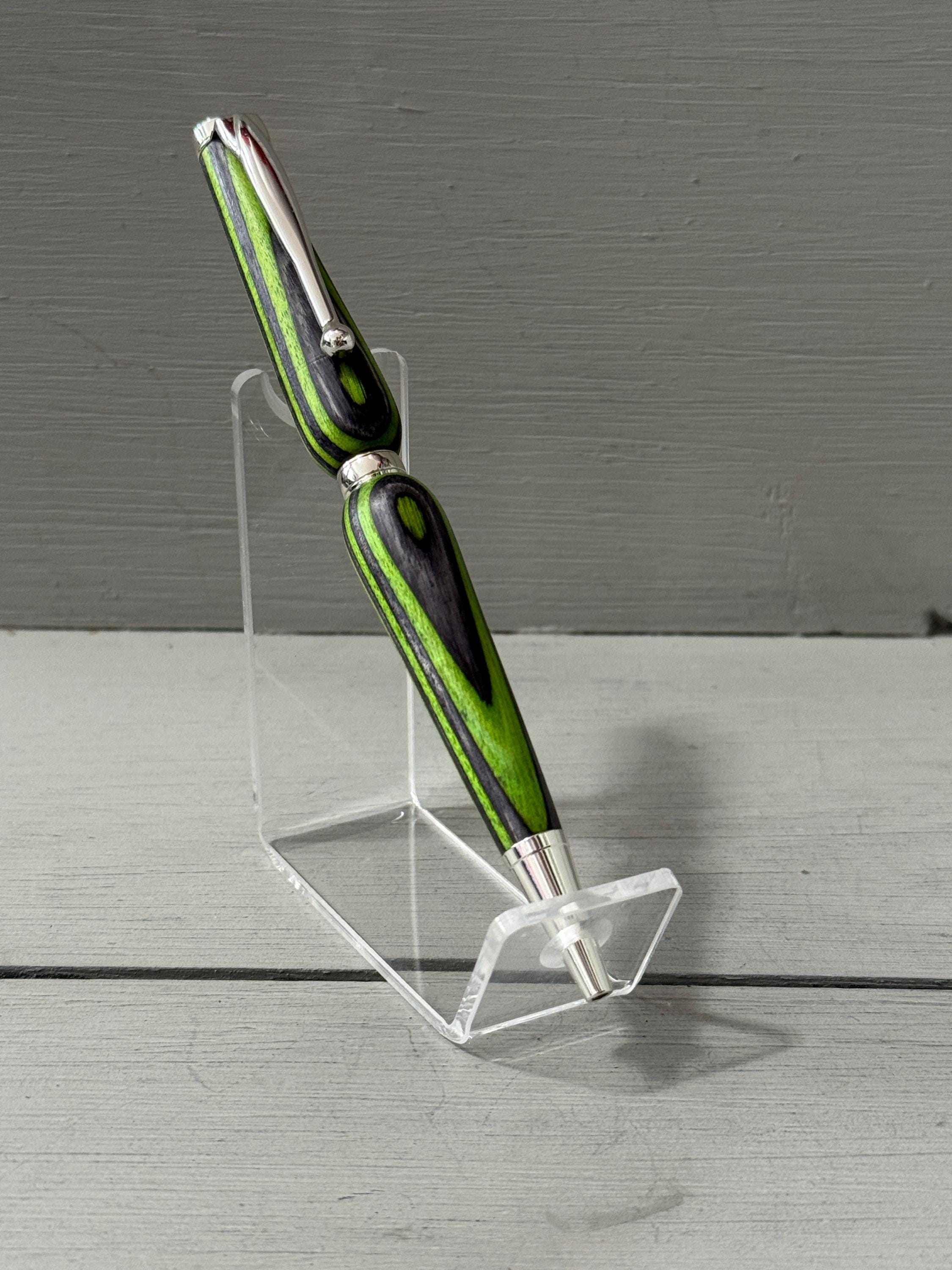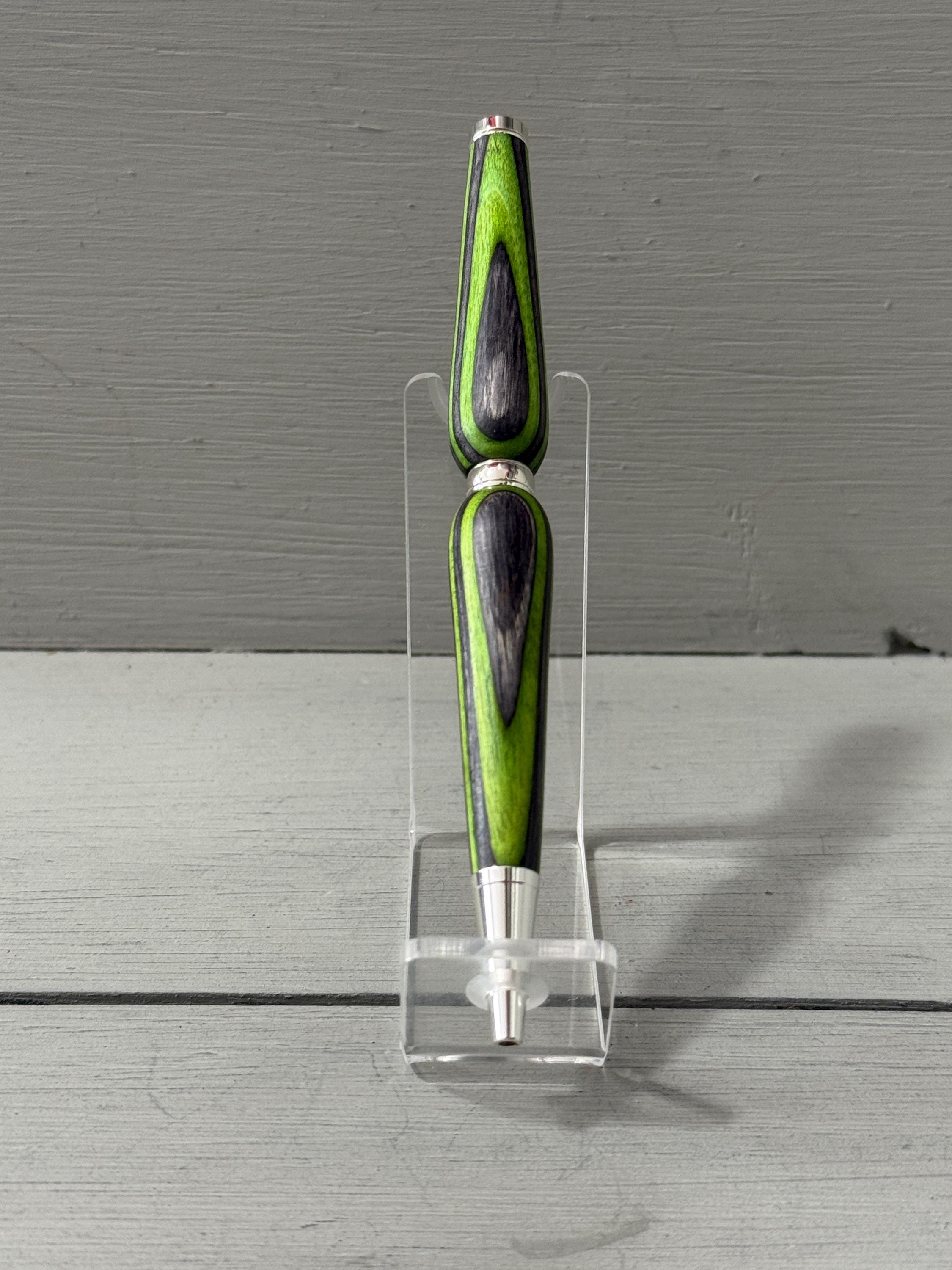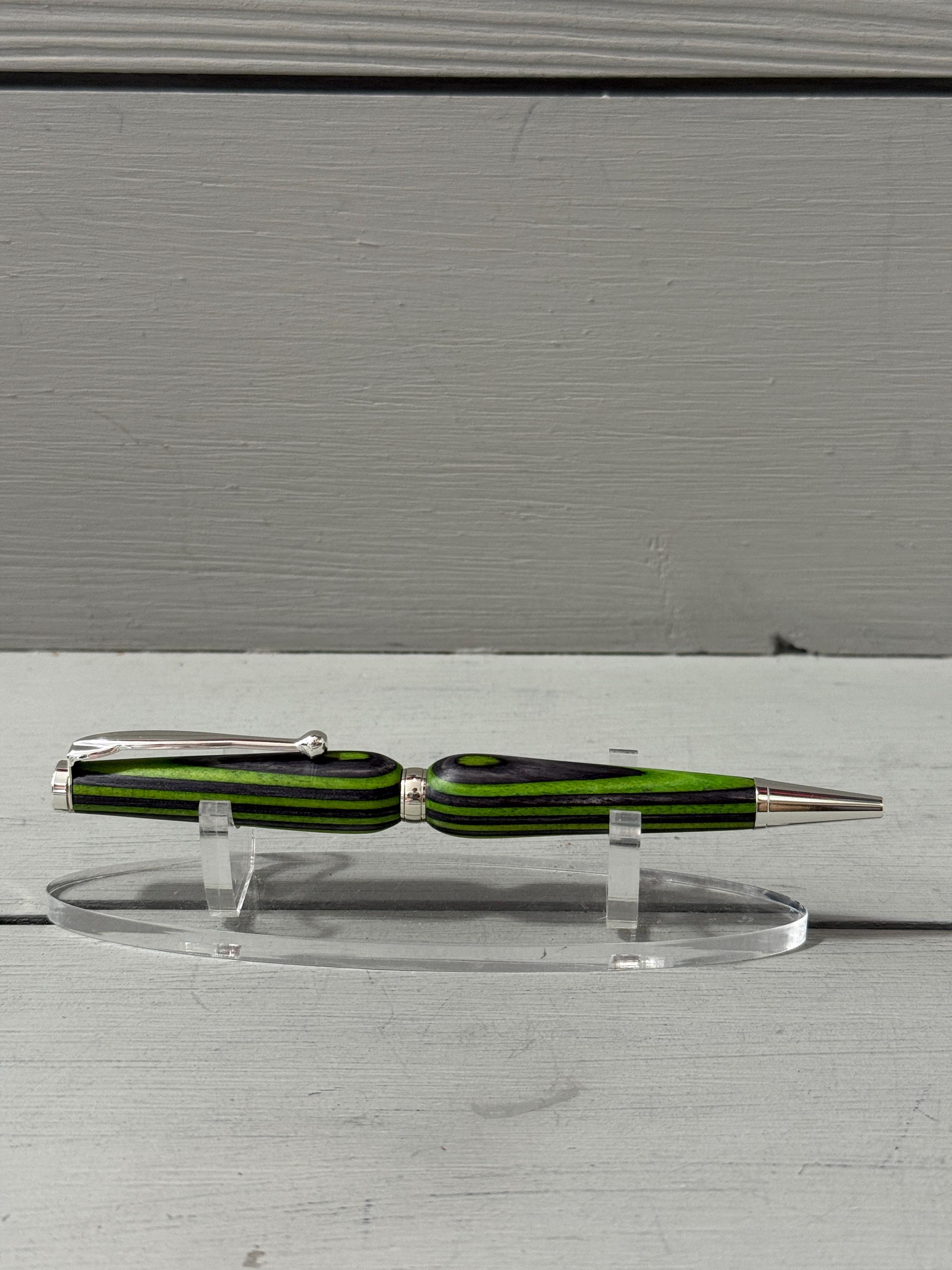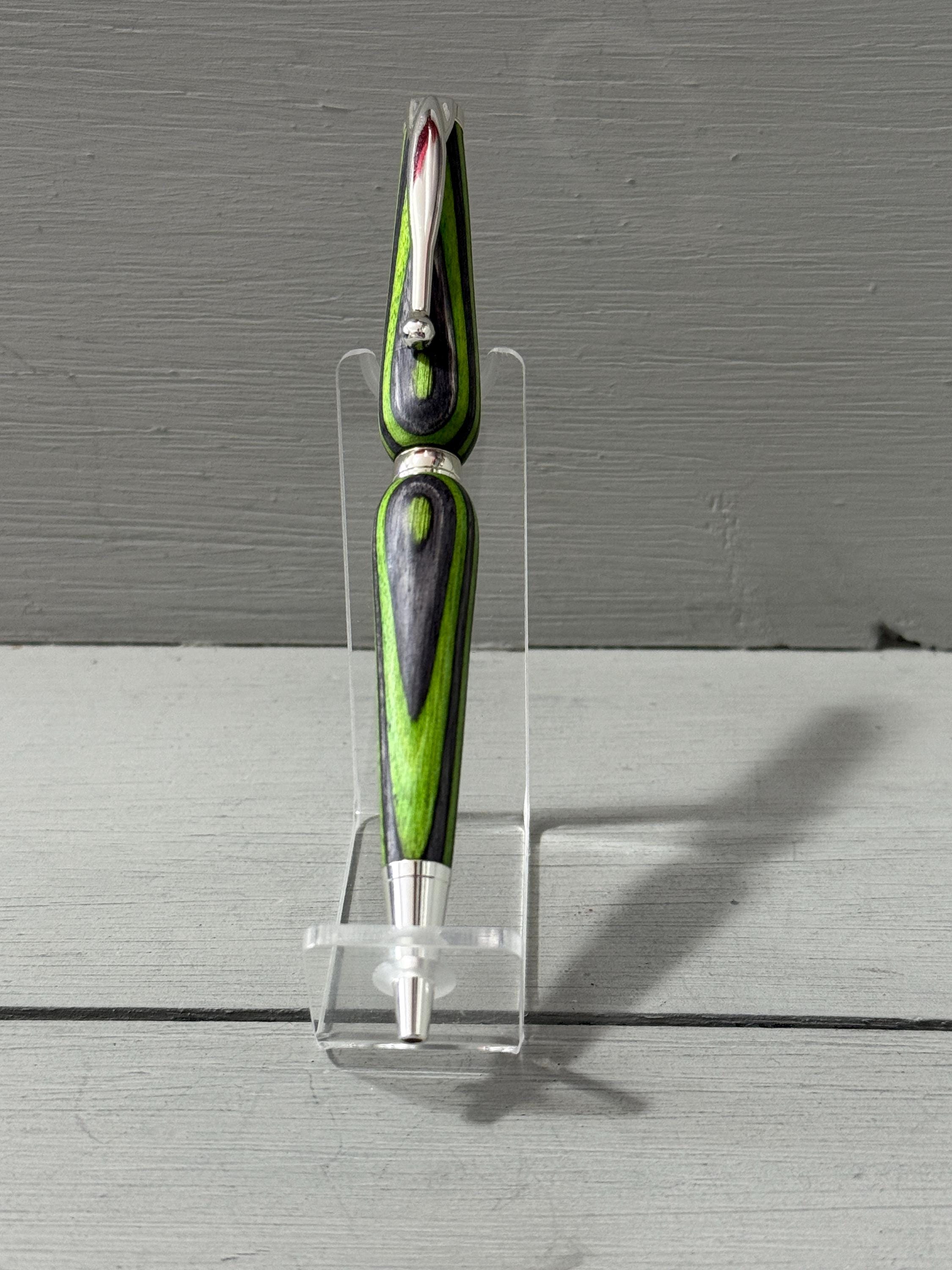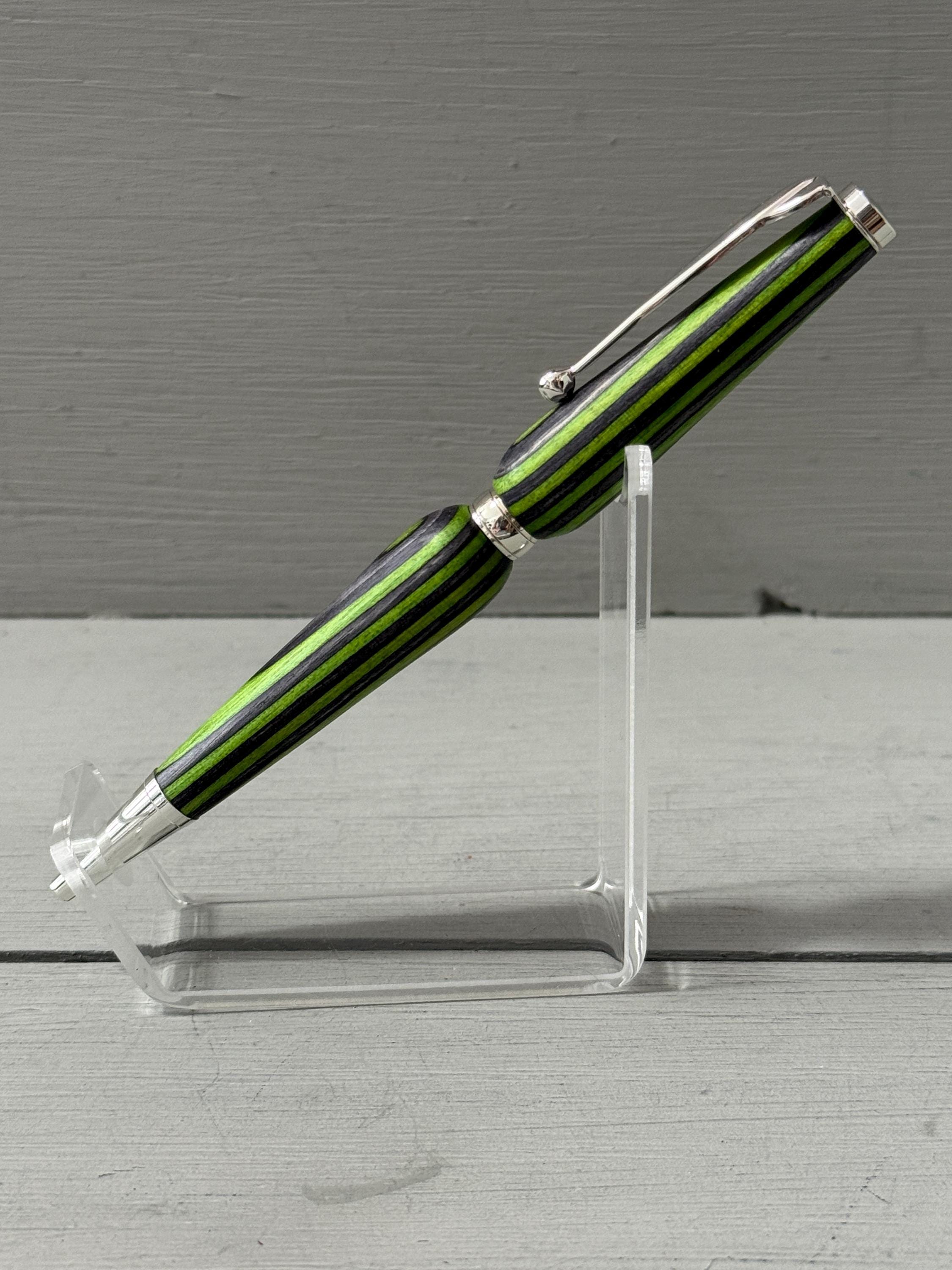 Spectraply’s layered wood design reveals beautiful patterns as it’s shaped on the lathe, ensuring that no two pens are ever alike. The green and gray tones paired with shiny chrome accents create a fresh, modern look that’s perfect for everyday use or display.