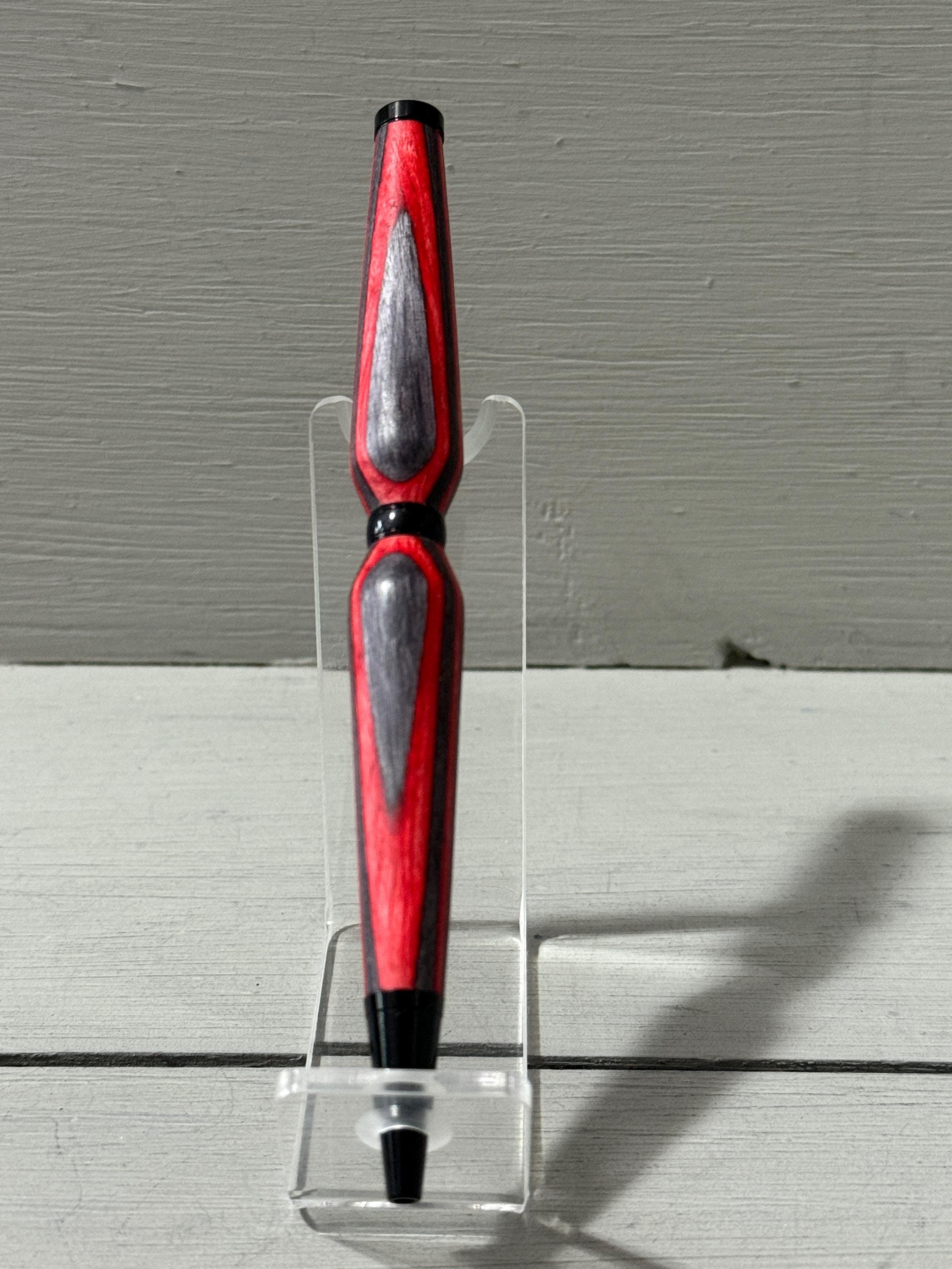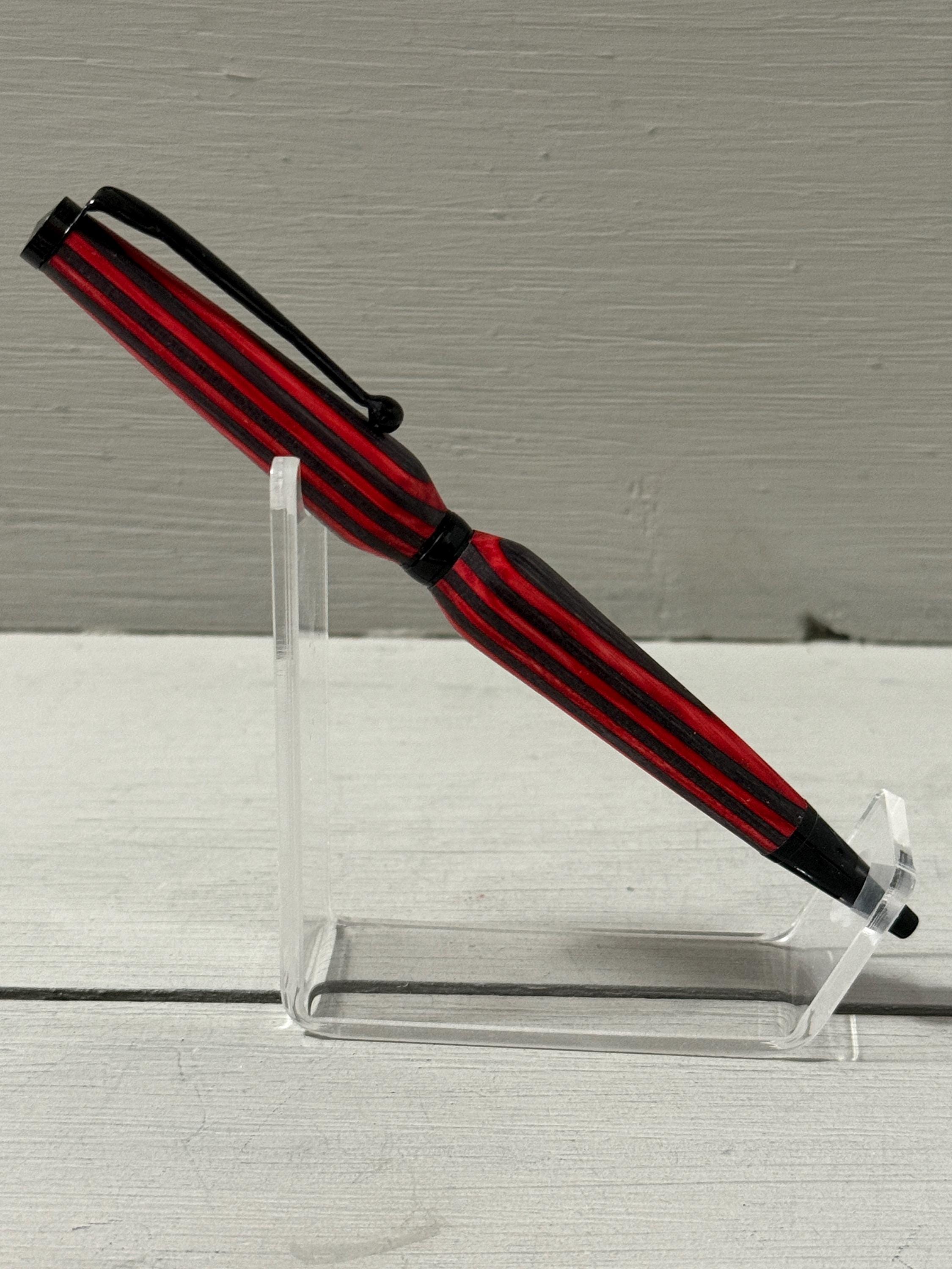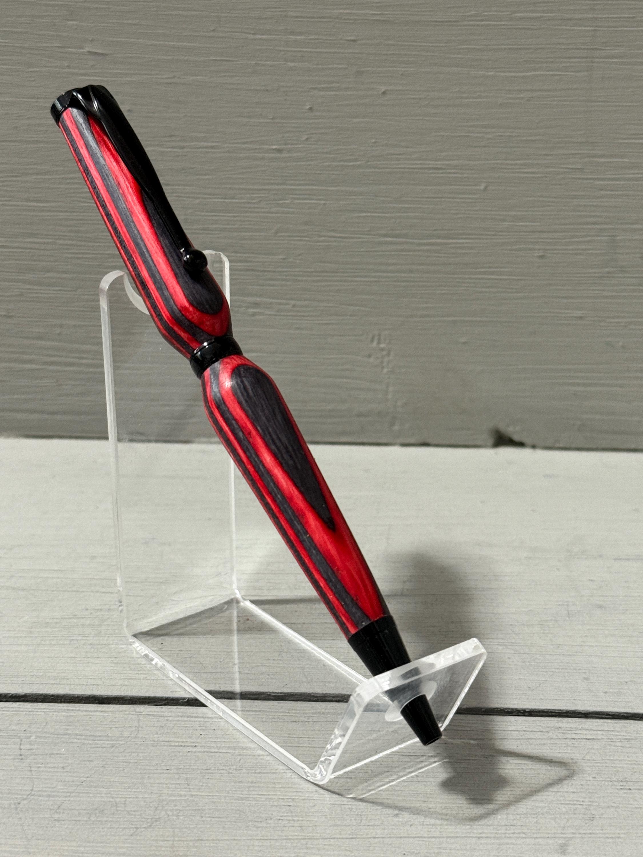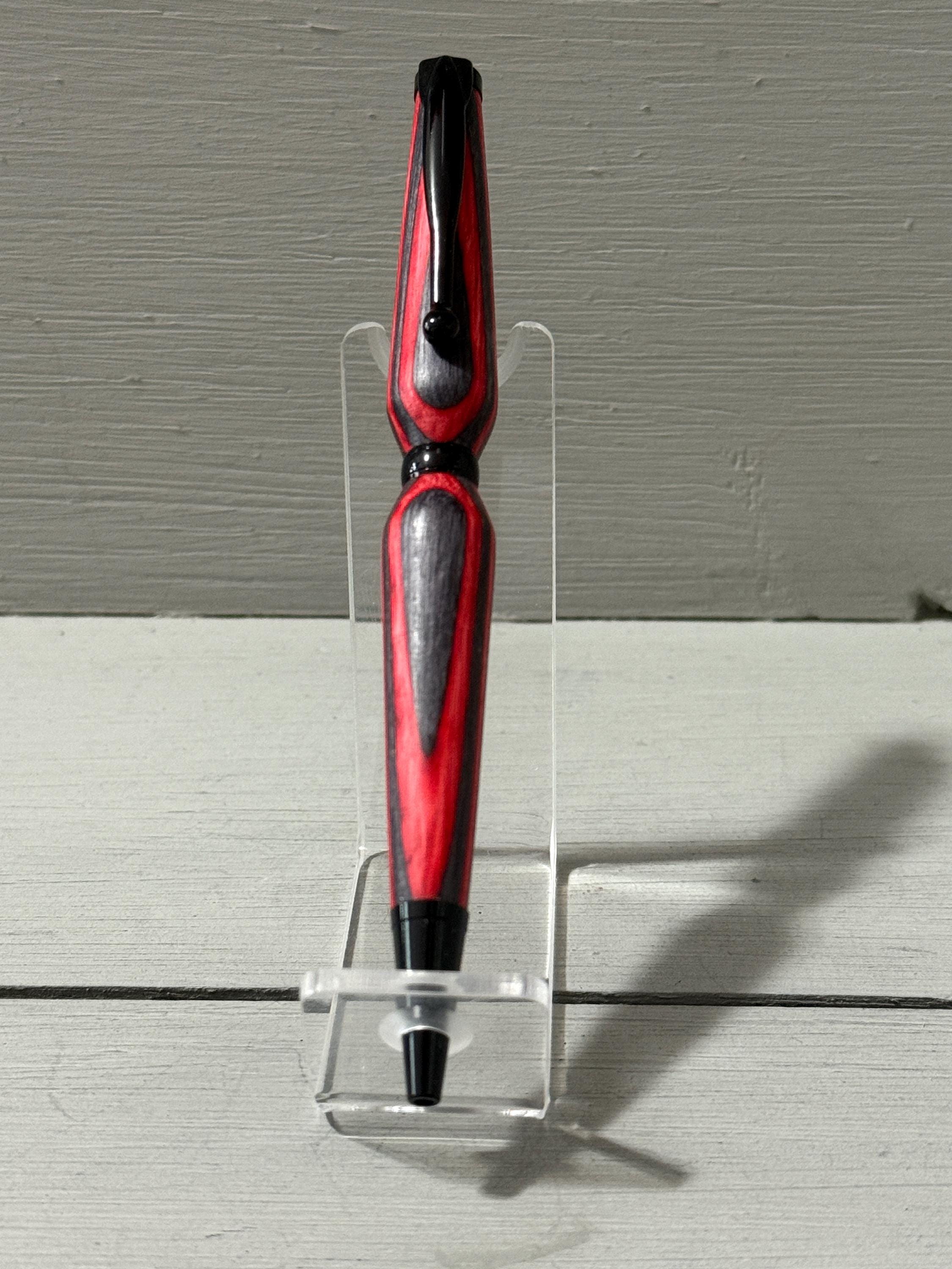 Bold, vibrant, and full of character—Life is a handcrafted slim-style pen made from rich red Spectraply and finished with gleaming black chrome trim. Turned in the classic slimline silhouette, this pen is lightweight, comfortable, and designed for everyday inspiration.
