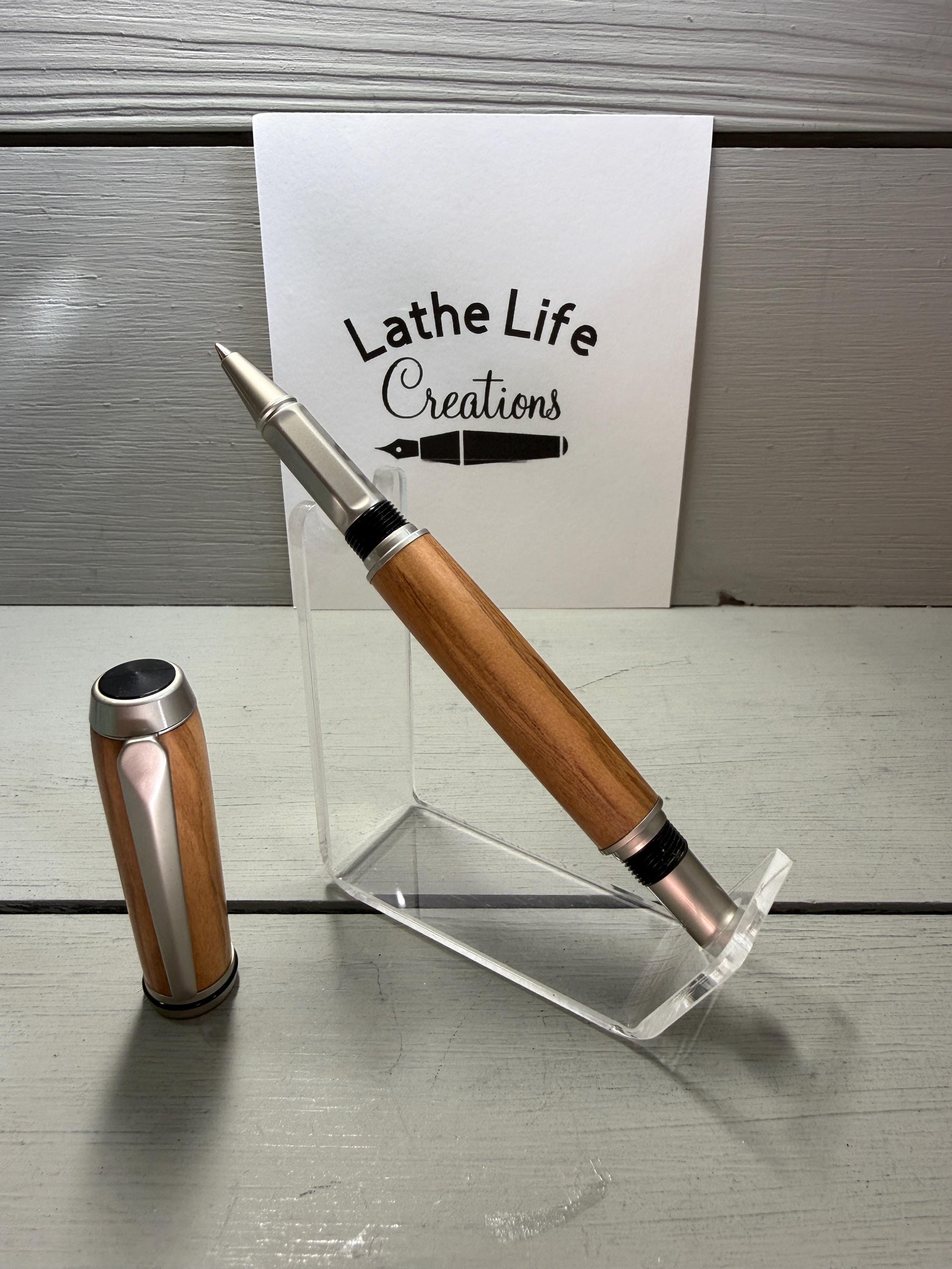 Each pen is turned with care to highlight the rich grain and warm tones of the olive wood. The result is a pen that not only looks stunning but feels just right in your hand. Whether you're signing important documents or journaling your thoughts, this pen brings elegance to every stroke.